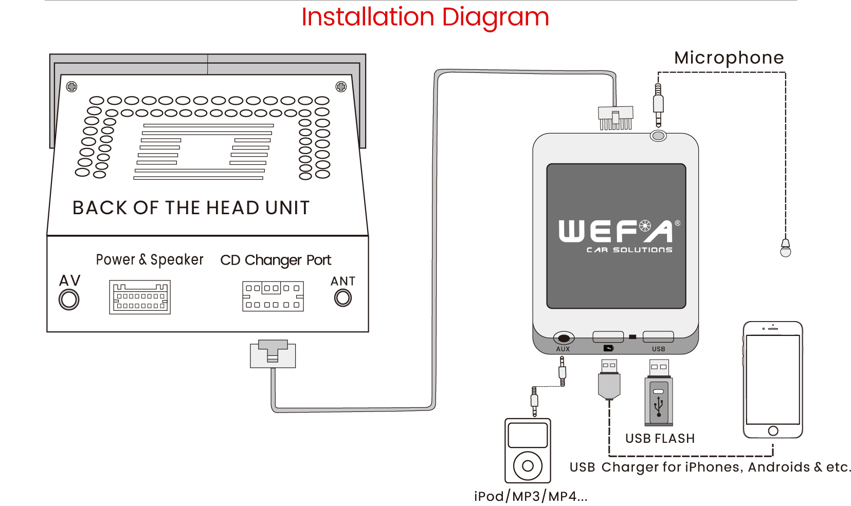 - No loss of quality or interference (as with FM transmitters) thanks to the direct linkrn Easy installation, without damage to the original car parts